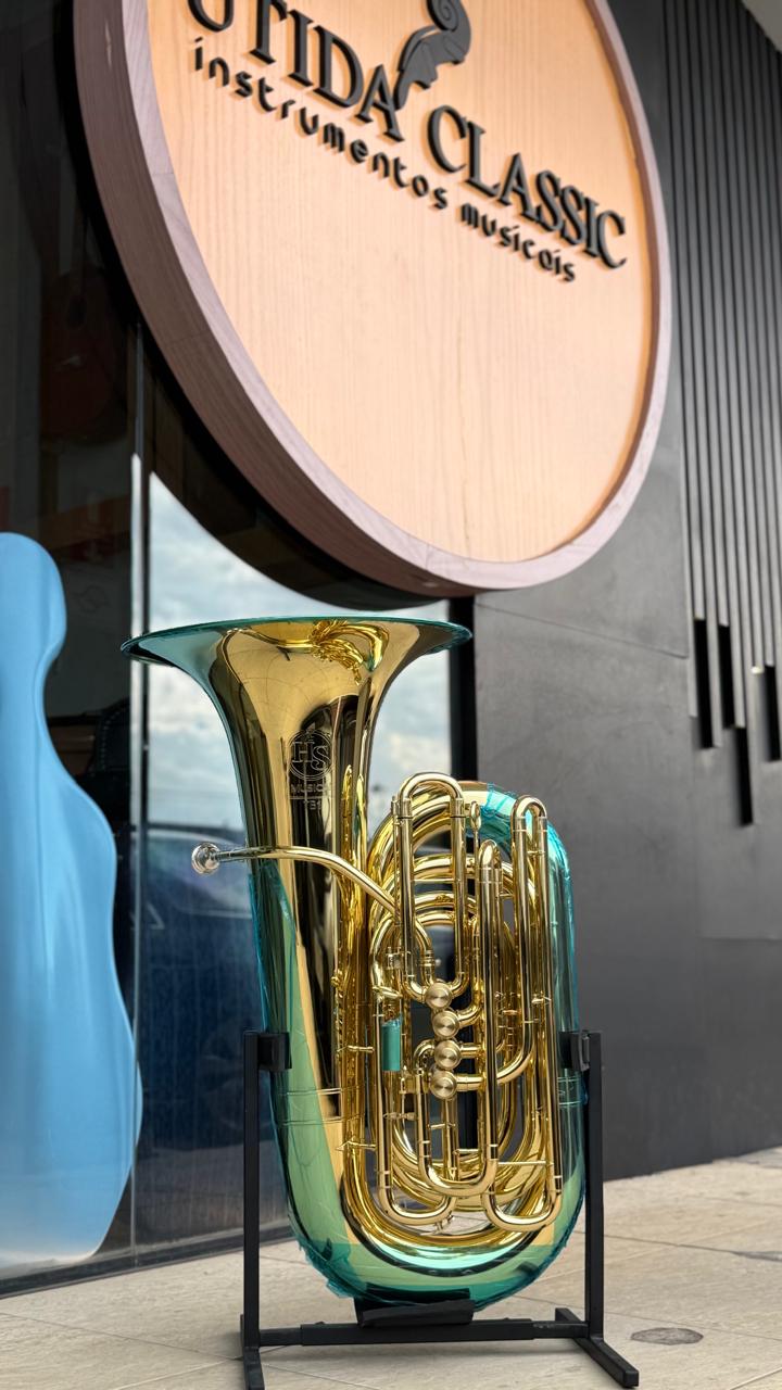 Tuba 5/4 Hs Musical TB1 Sib - Laqueada - Nova Aceito trocas - Parcelo 18x cartão Instrumento novo, lacrado, sem uso. Modelo 5/4 Compacta HSTB1 Acabamento: Laqueado Afinação Bb ( Sibemol ) Calibre 19,05mm Campana 50cm ( Modelo 2025) 4 Pistos Acompanha bocal , capa PVC reforçada, vareta de limpeza. Garantia de 3 anos contra defeitos de fabricação ou de materiais Fabricado 100% no Brasil Emitimos Nota fiscal!